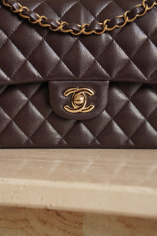 CHANEL CLASSIC 22K SMALL DOUBLE FLAP | DARK BROWN