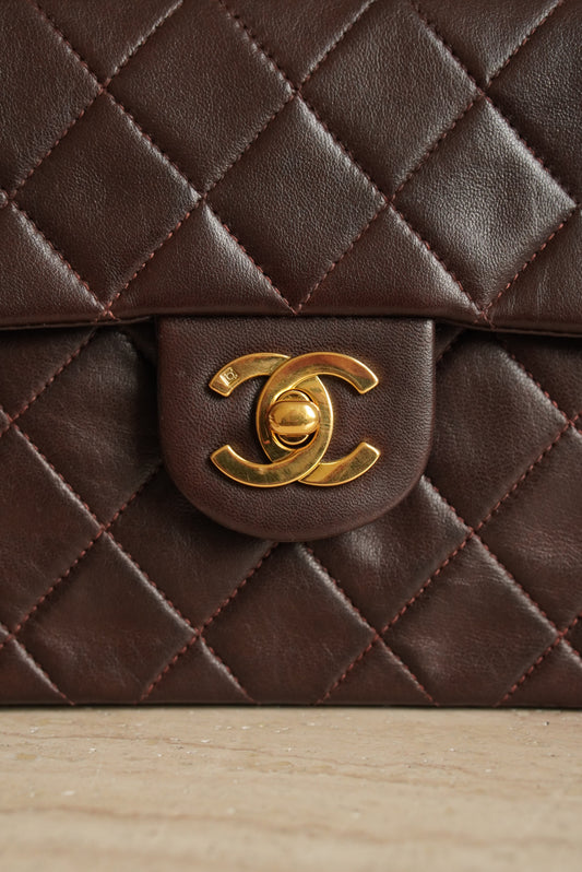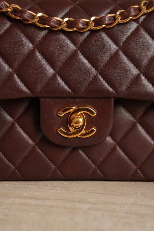 CHANEL CLASSIC 22K SMALL DOUBLE FLAP | DARK BROWN