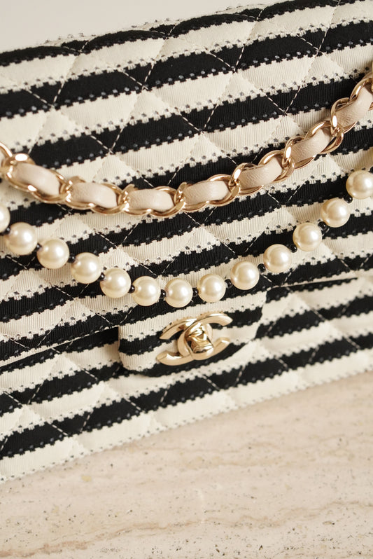 CHANEL CLASSIC COCO SAILOR MEDIUM DOUBLE FLAP | BLACK STRIPED