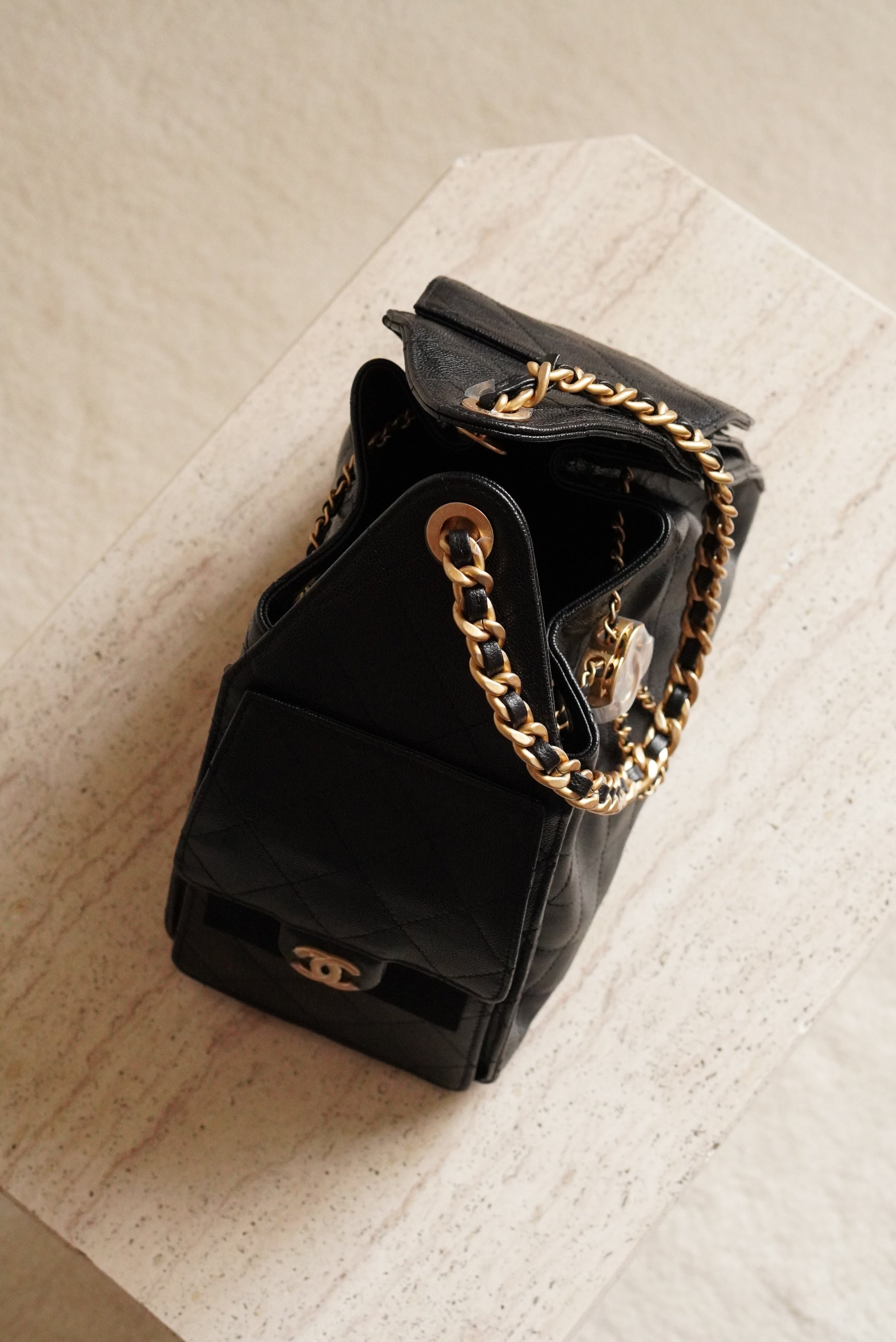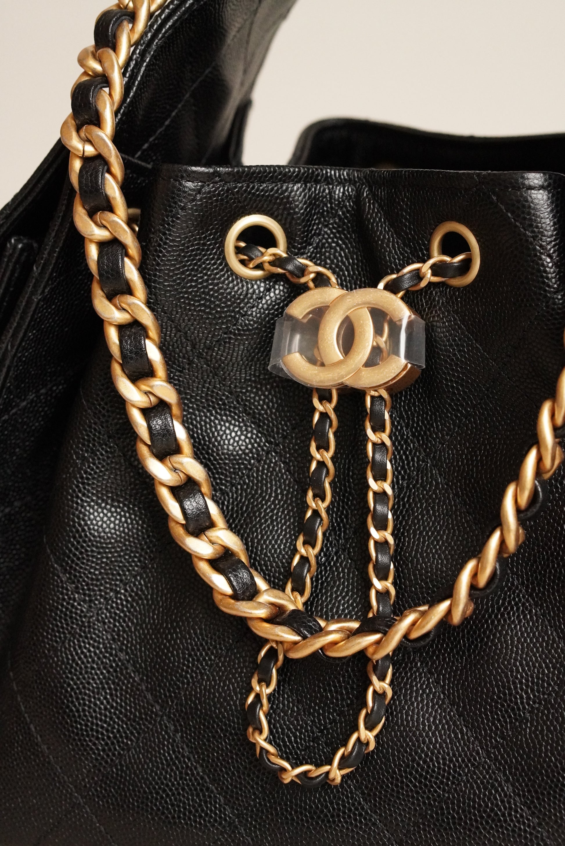 Black caviar leather with gold hardware