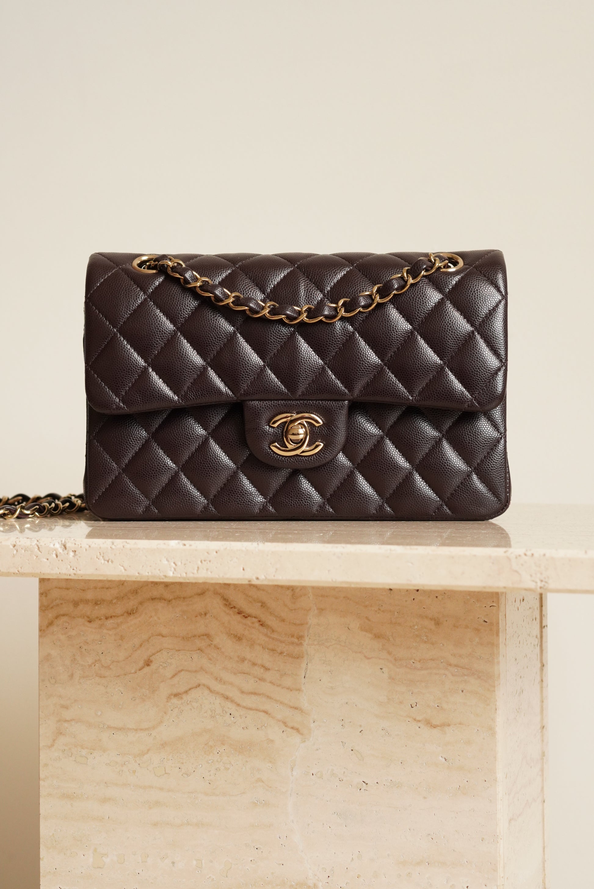 CHANEL CLASSIC 22K SMALL DOUBLE FLAP | DARK BROWN