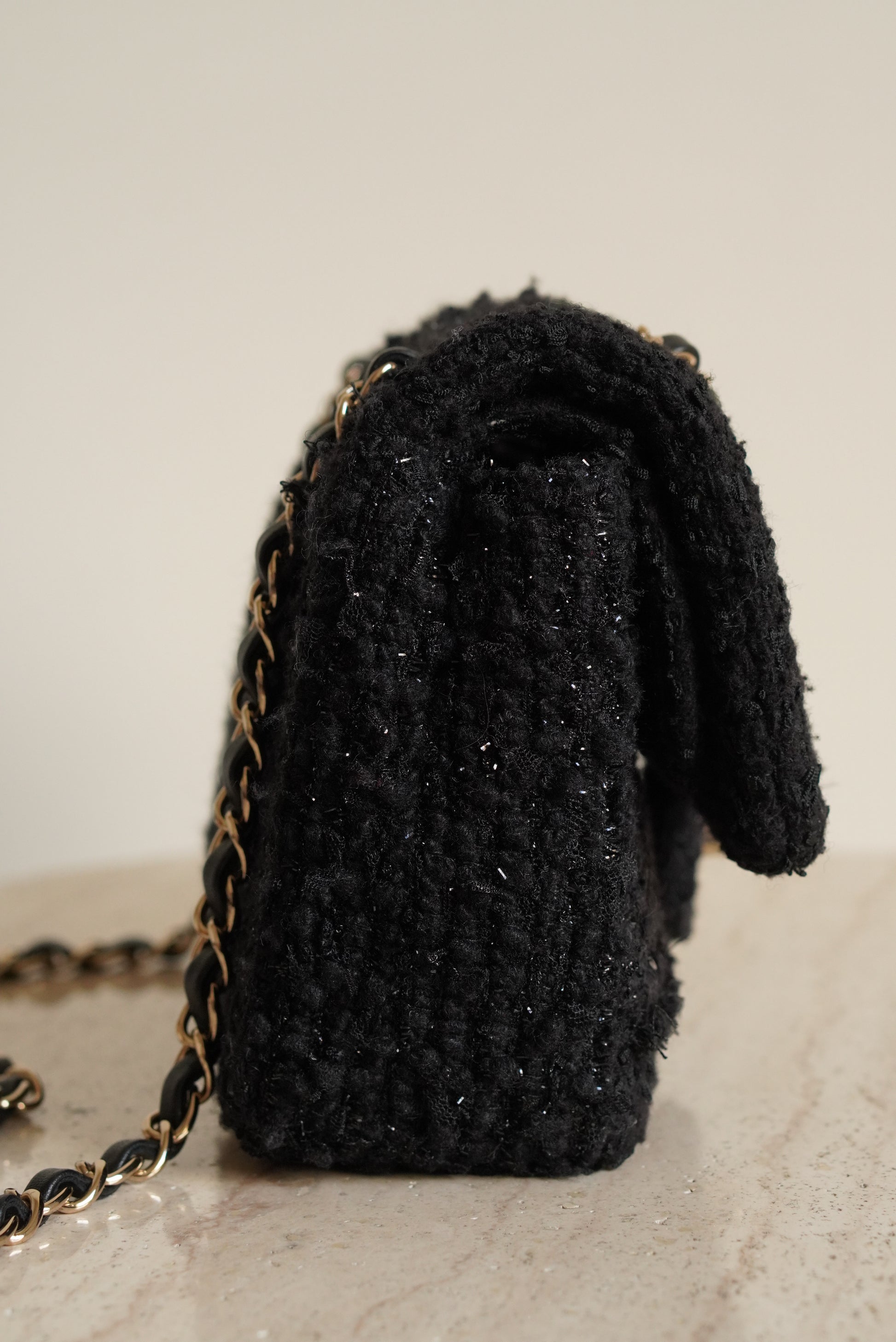 Black Tweed Patchwork with beads, sequins and with light gold hardware