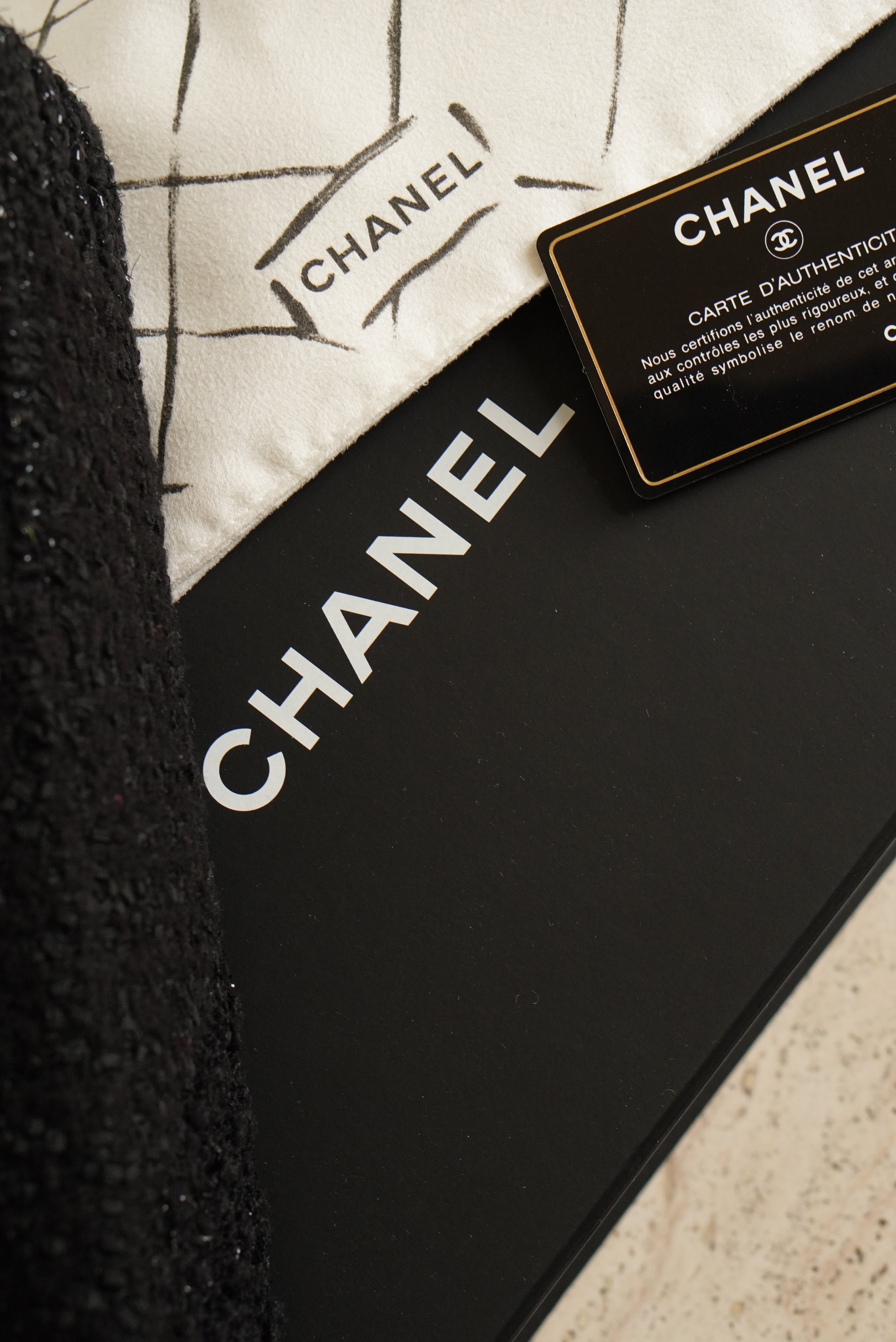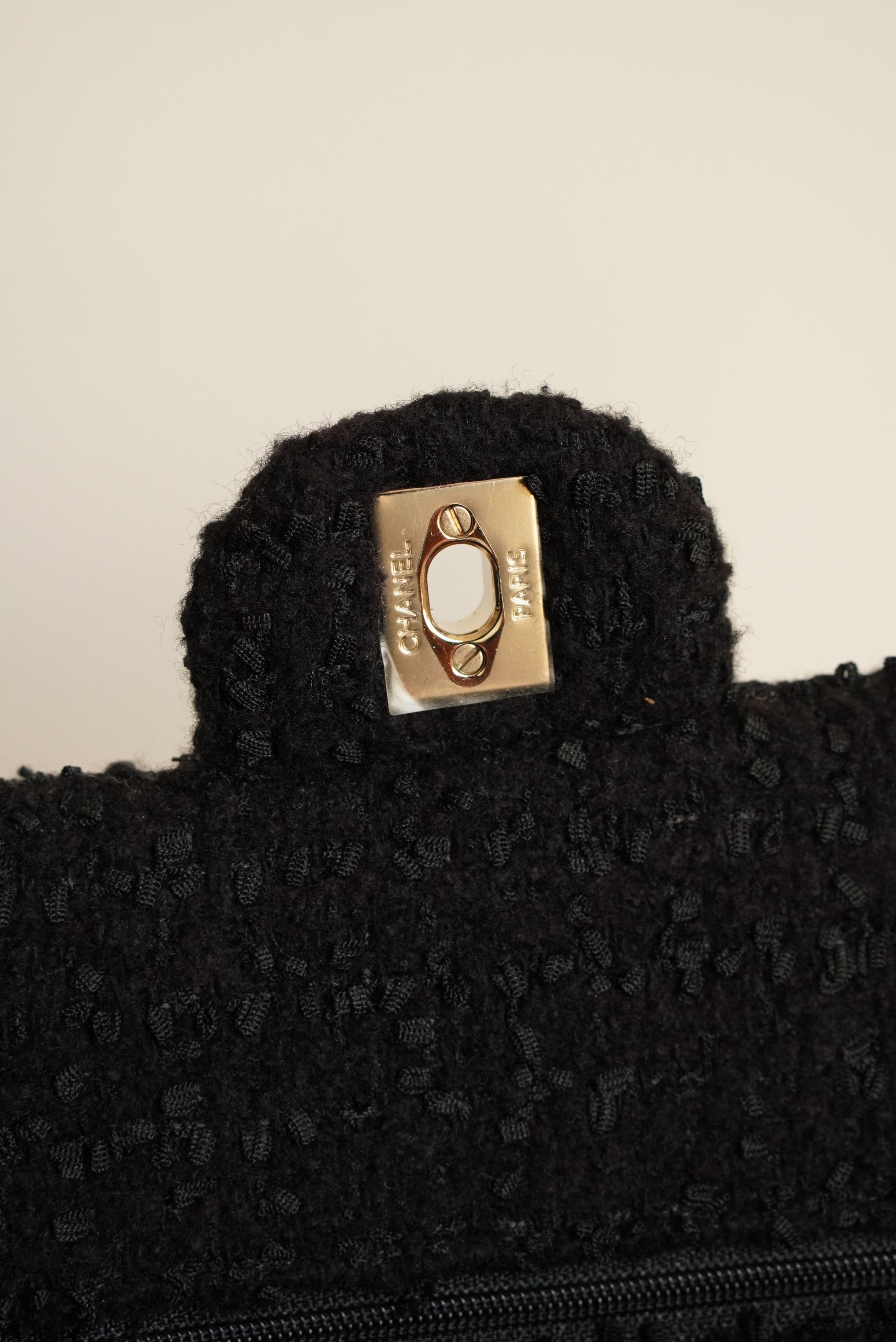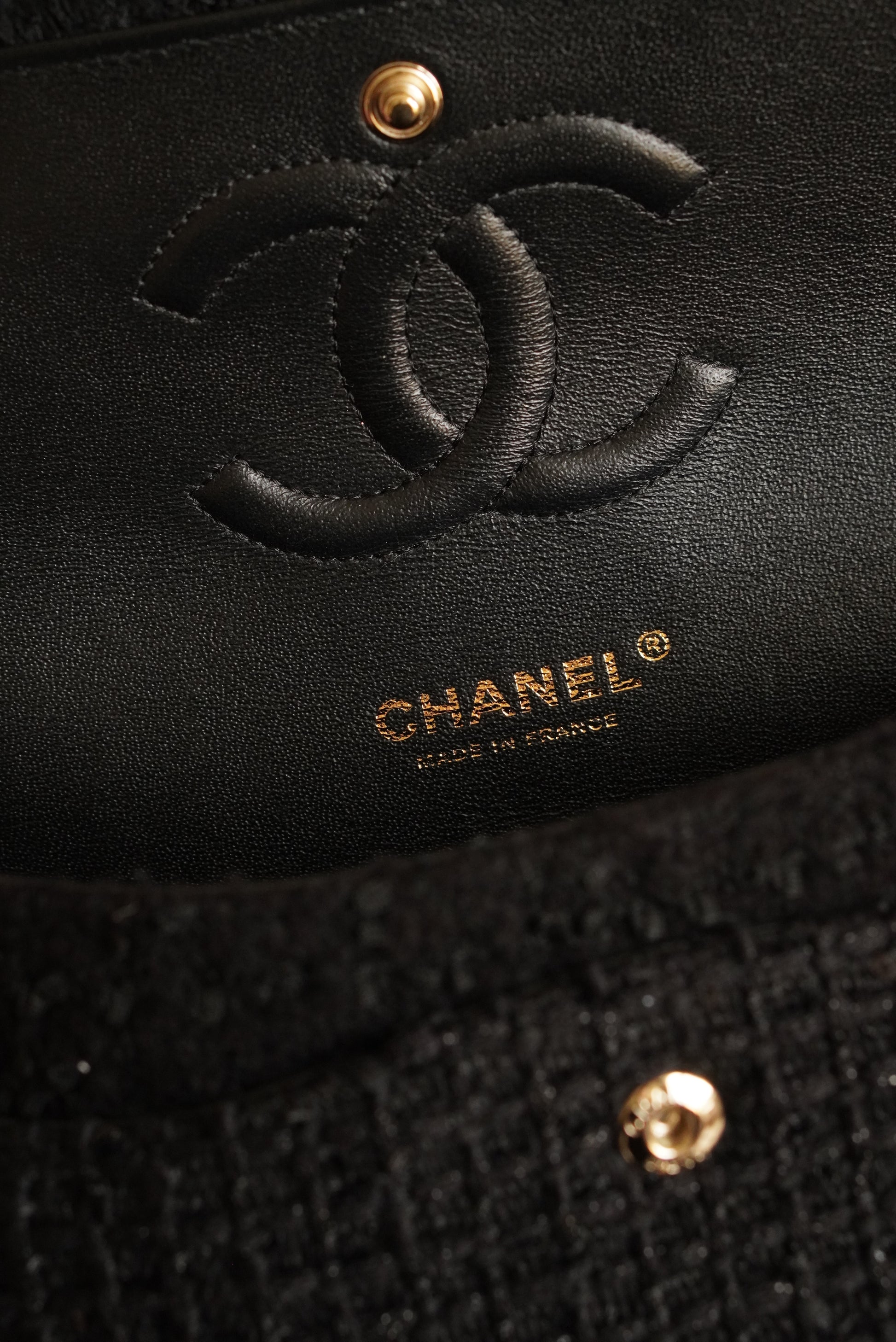CHANEL CLASSIC MEDIUM DOUBLE FLAP | BLACK TWEED PATCHWORK