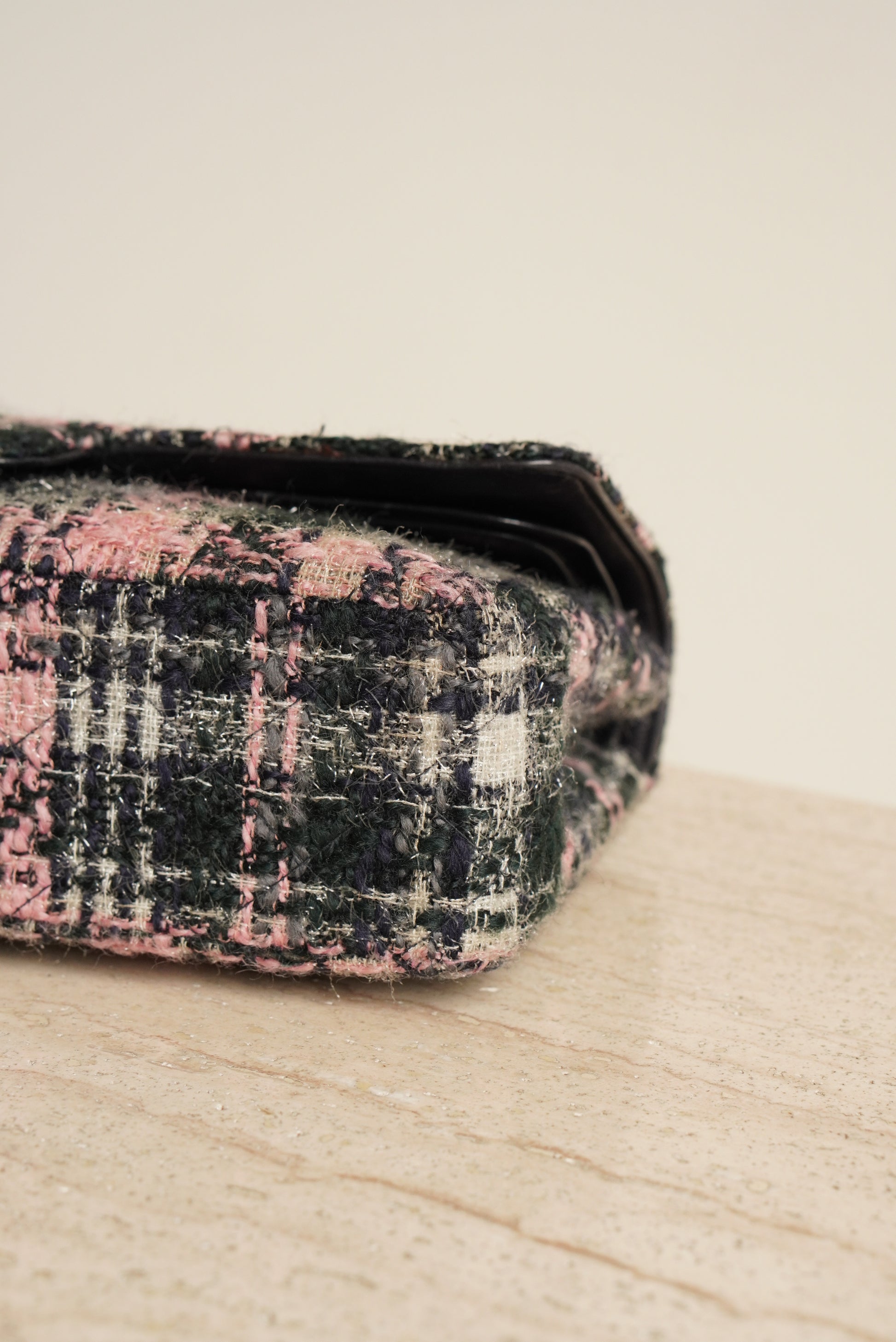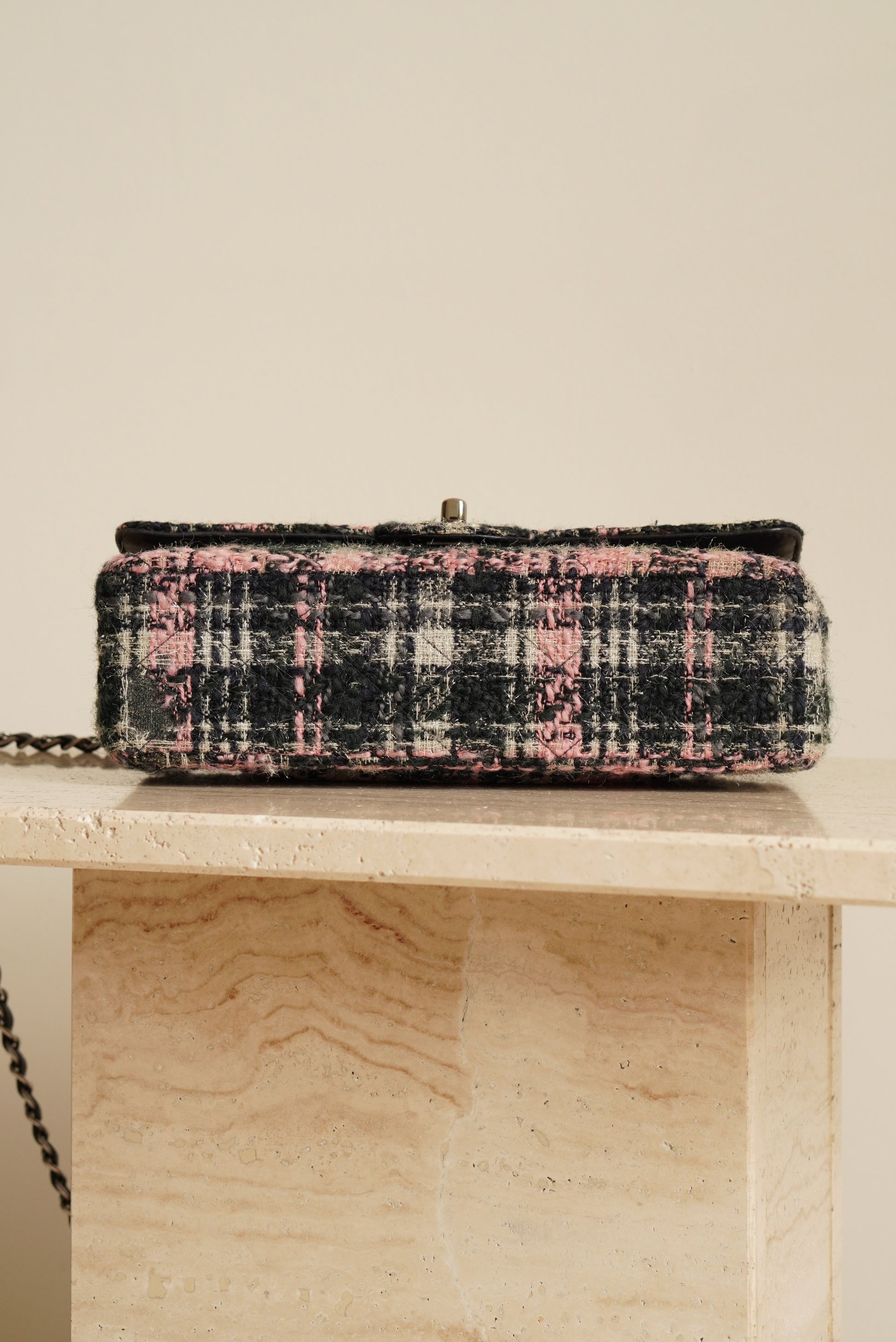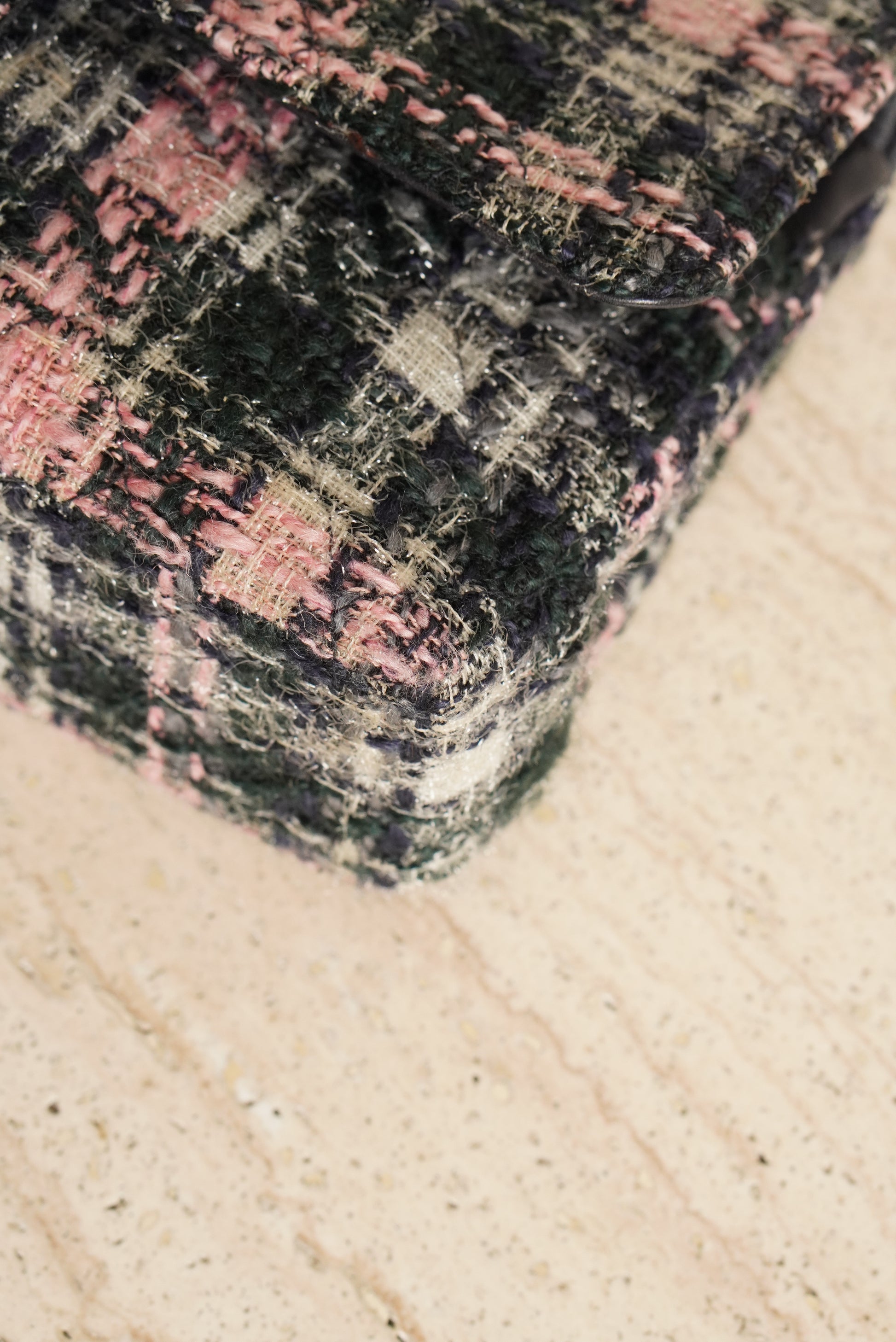 Colorful tweed (pink, dark green, navy blue, grey, black and white) with silver hardware