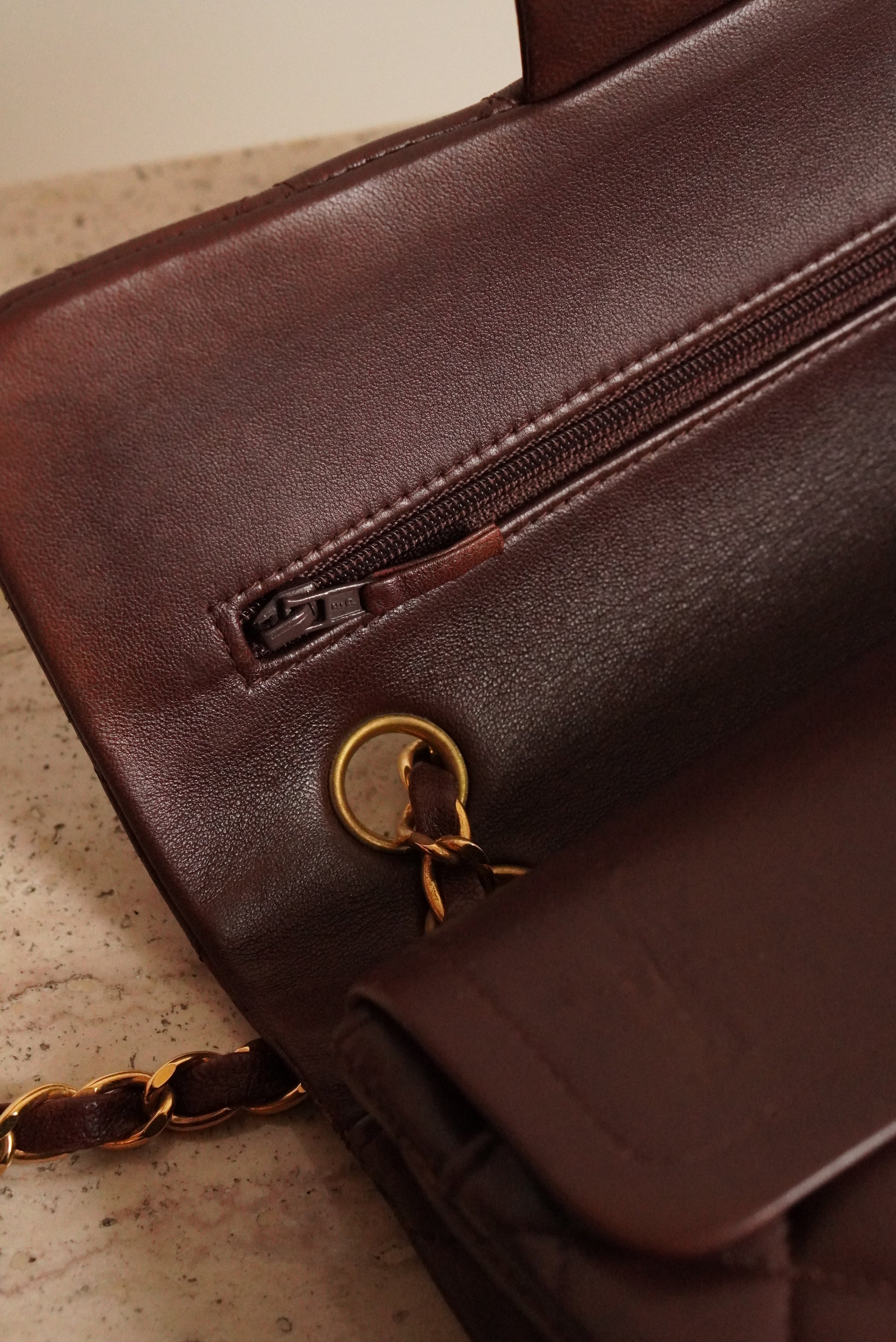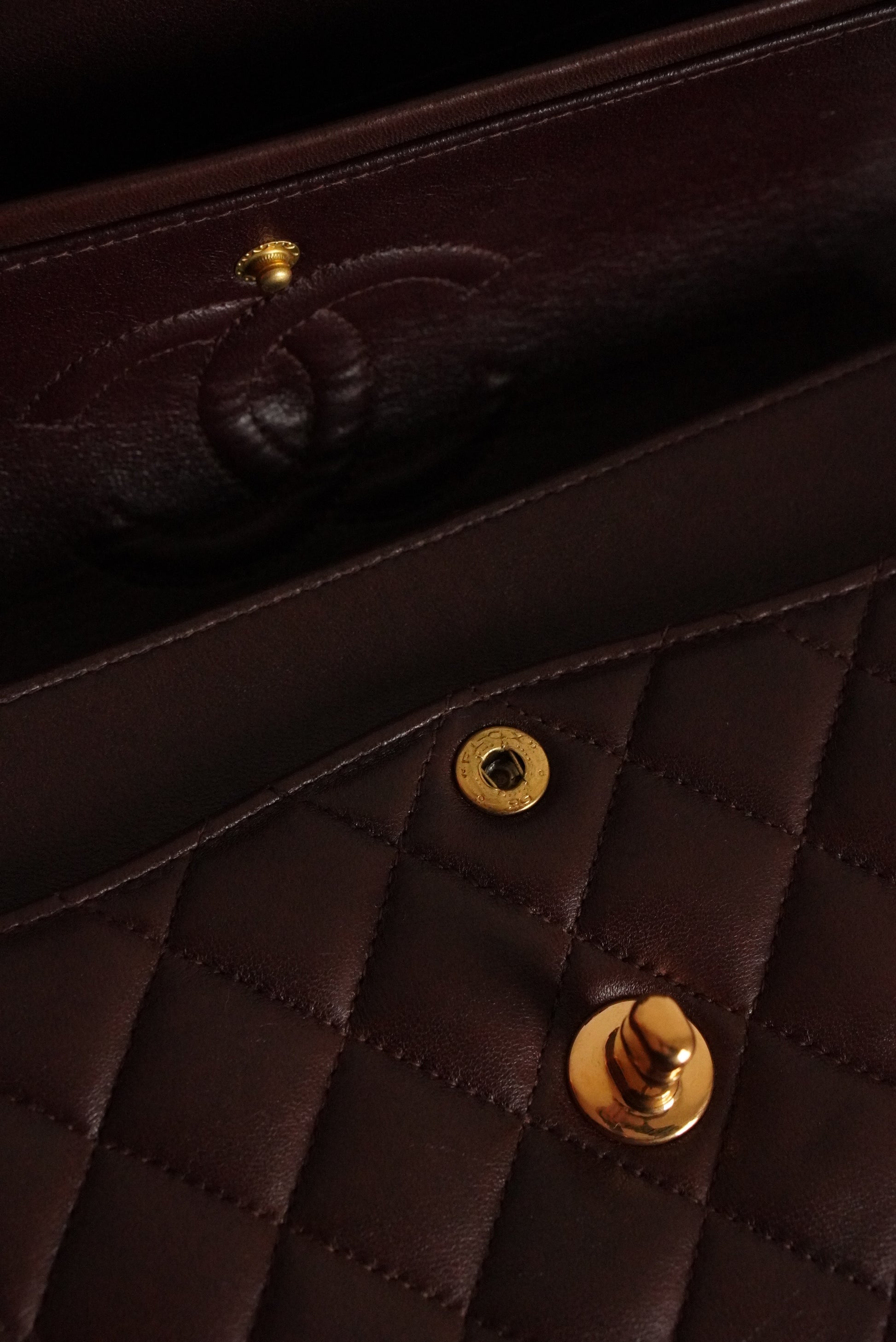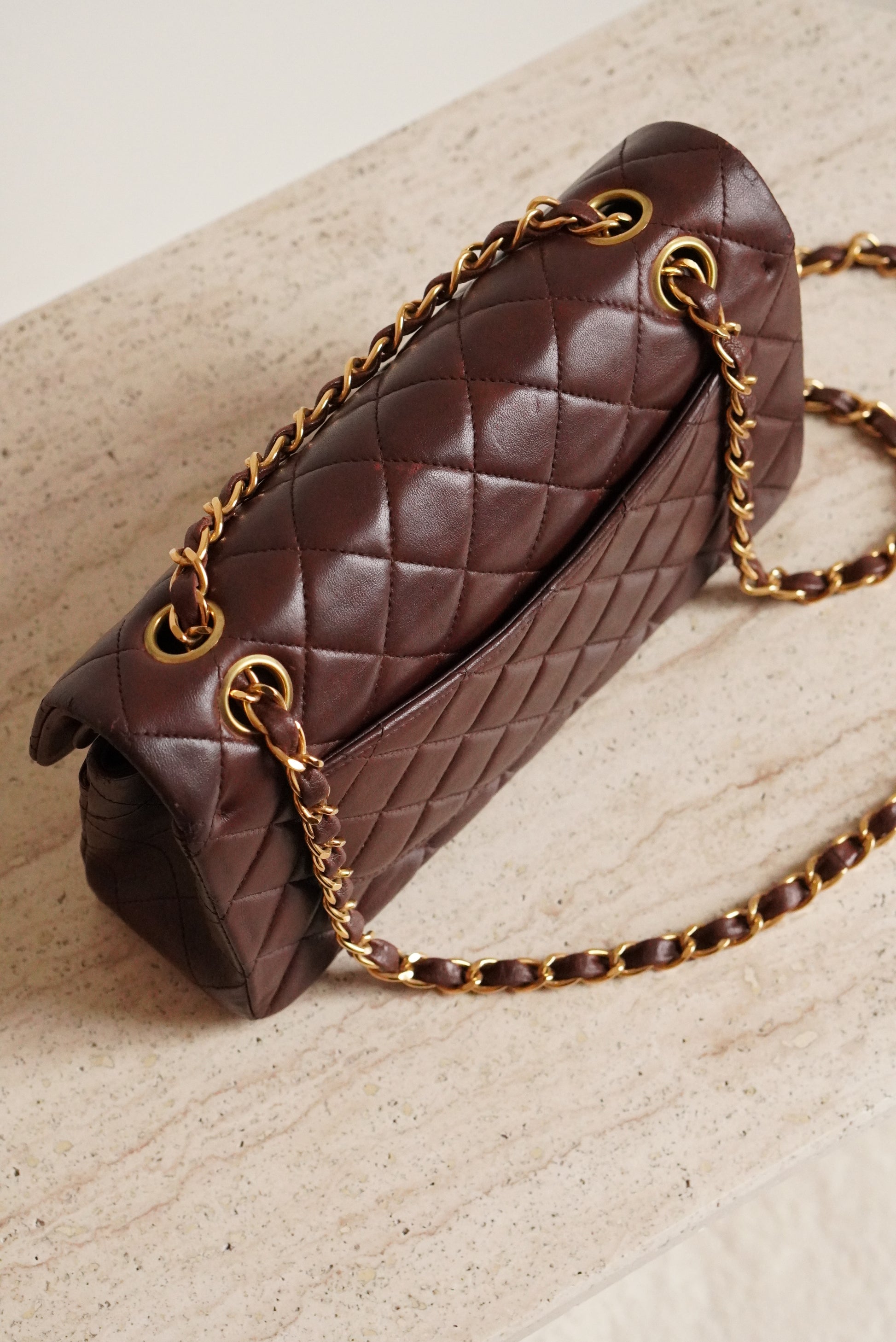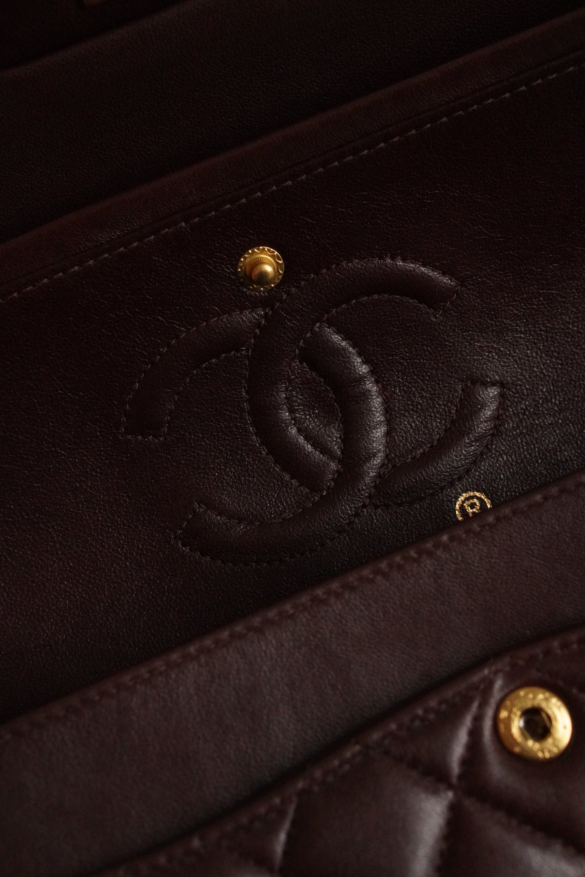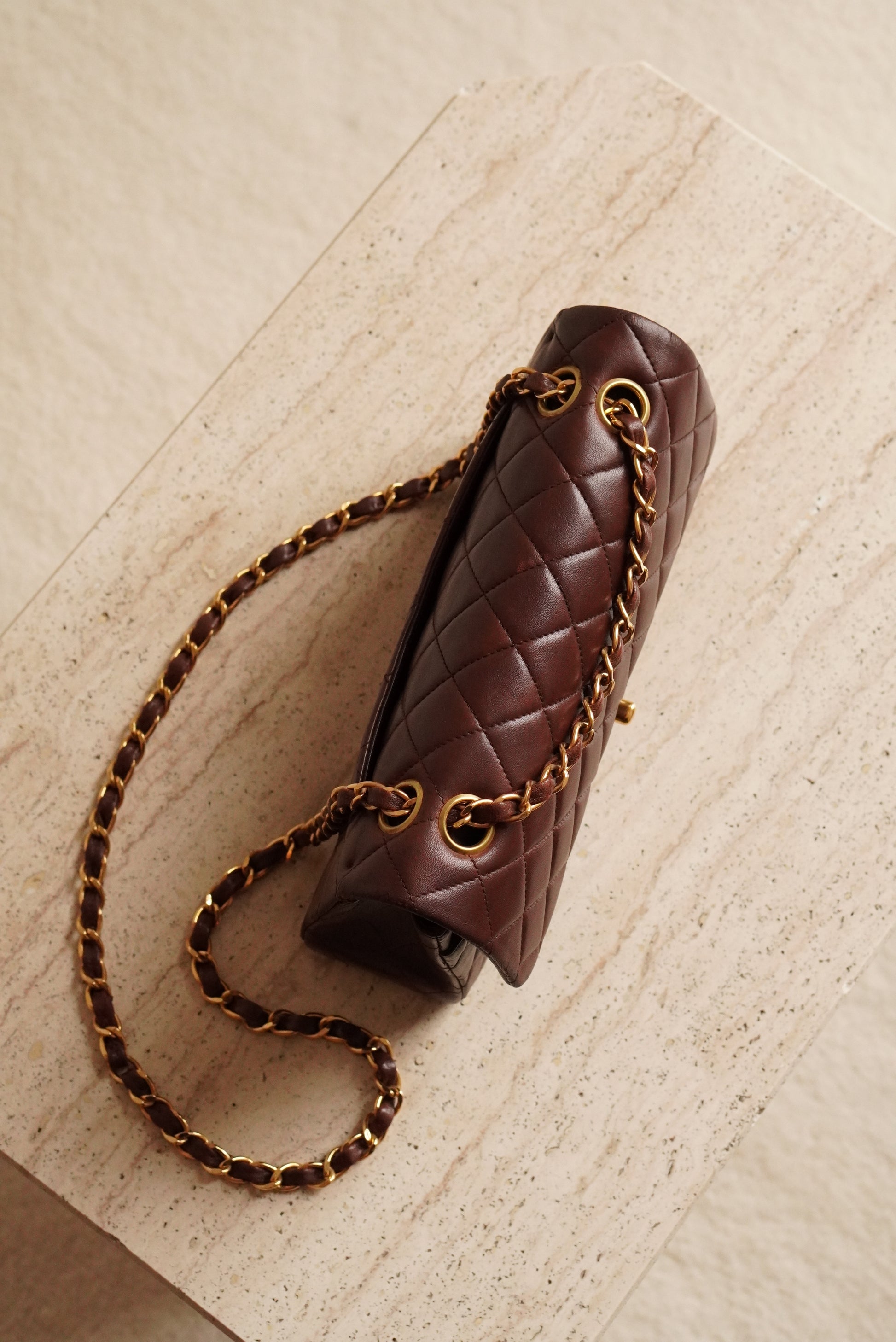 Brown lambskin leather with 24k gold-plated hardware