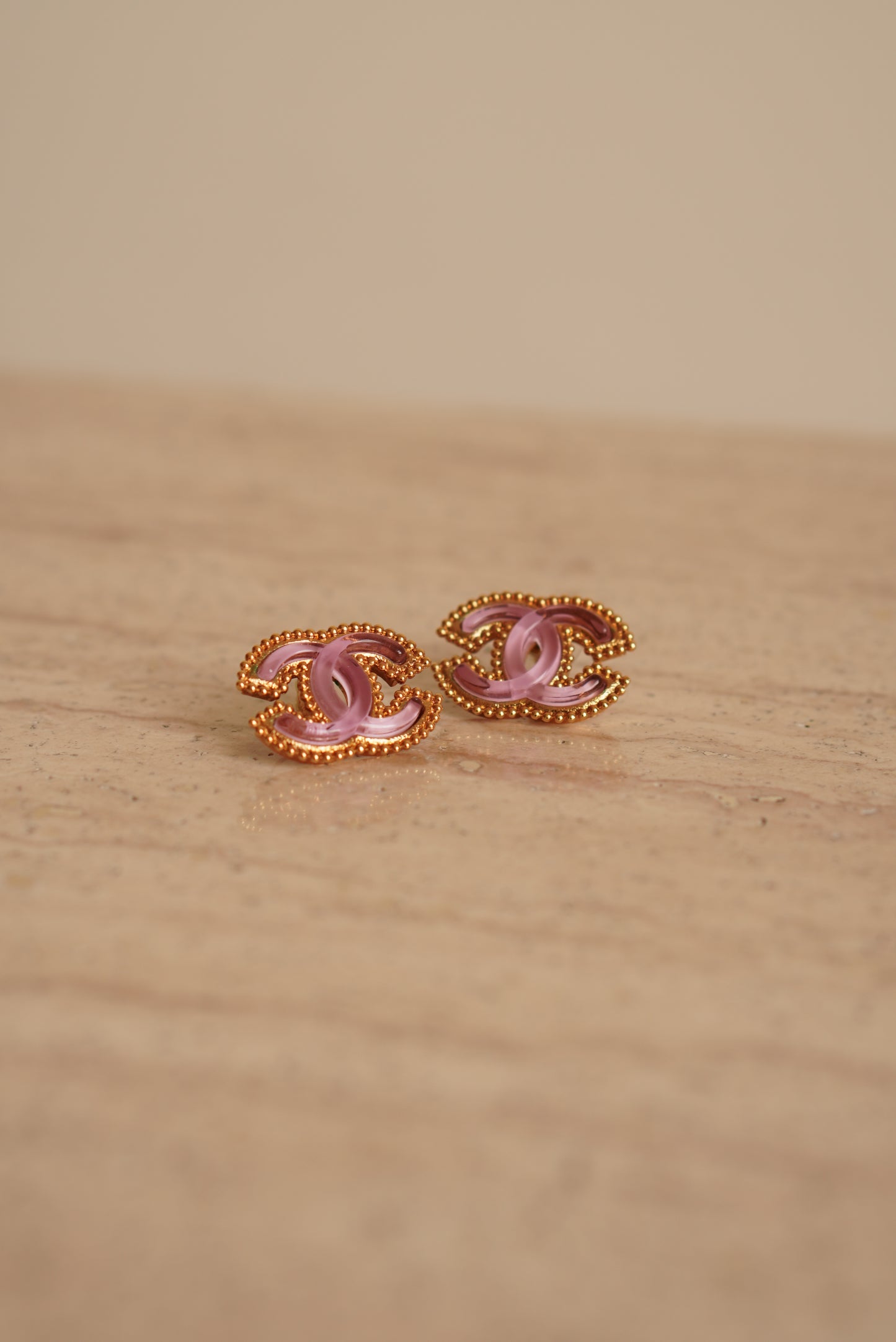 This signature piece of Chanel jewellery is from the Chanel Spring Summer 2024 earring  collection. It is crafted in a gold-toned metal with pink details in the classic Chanel shape.