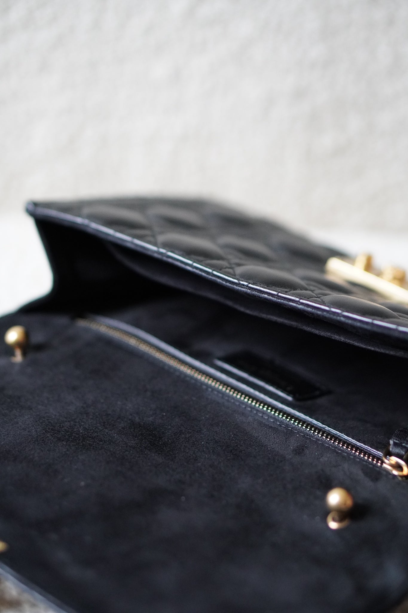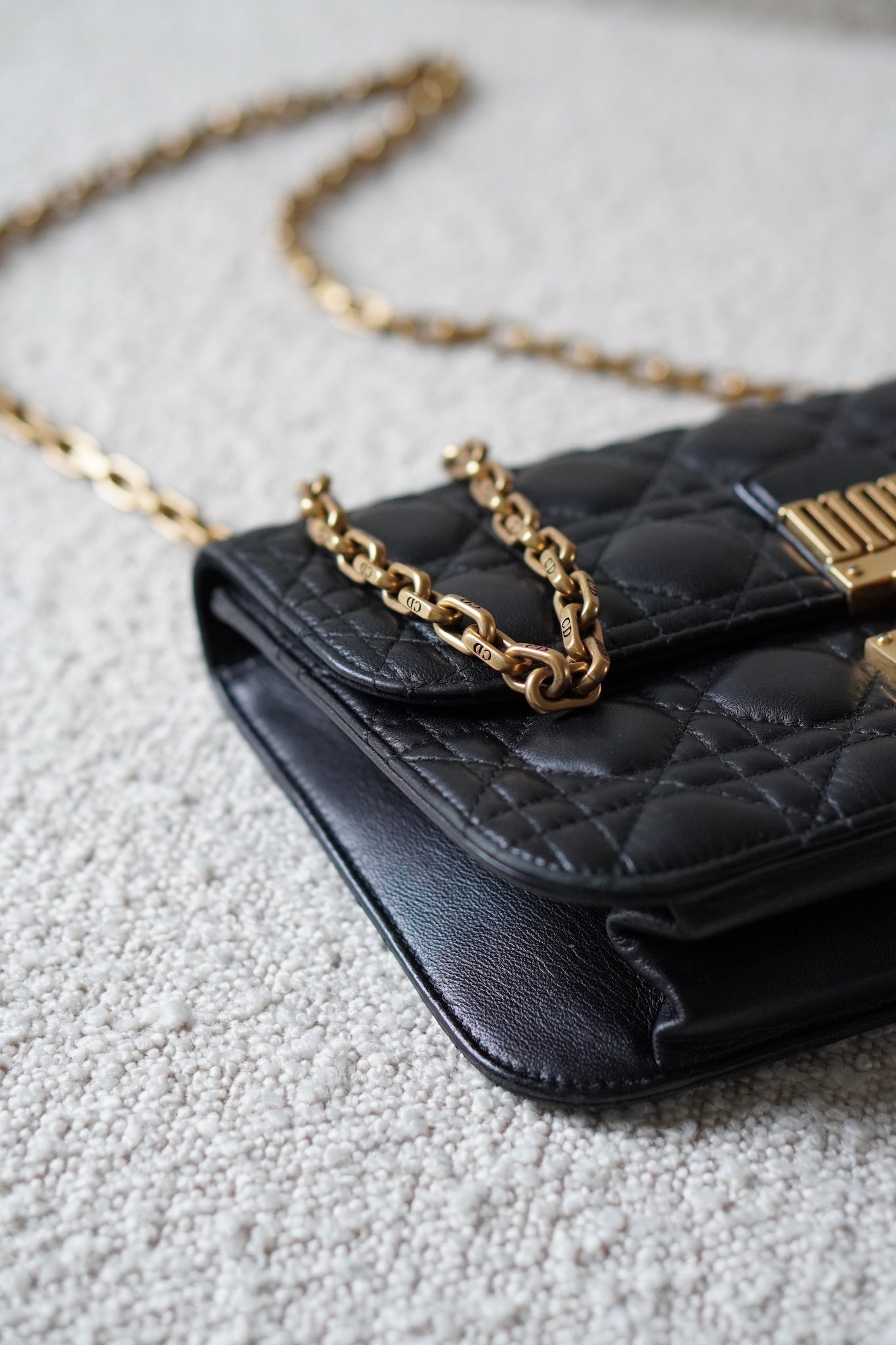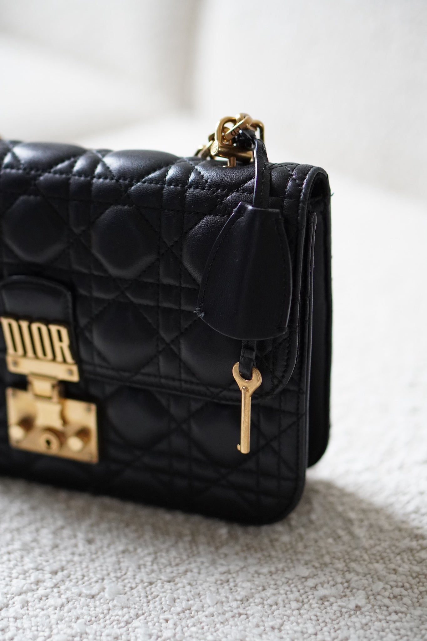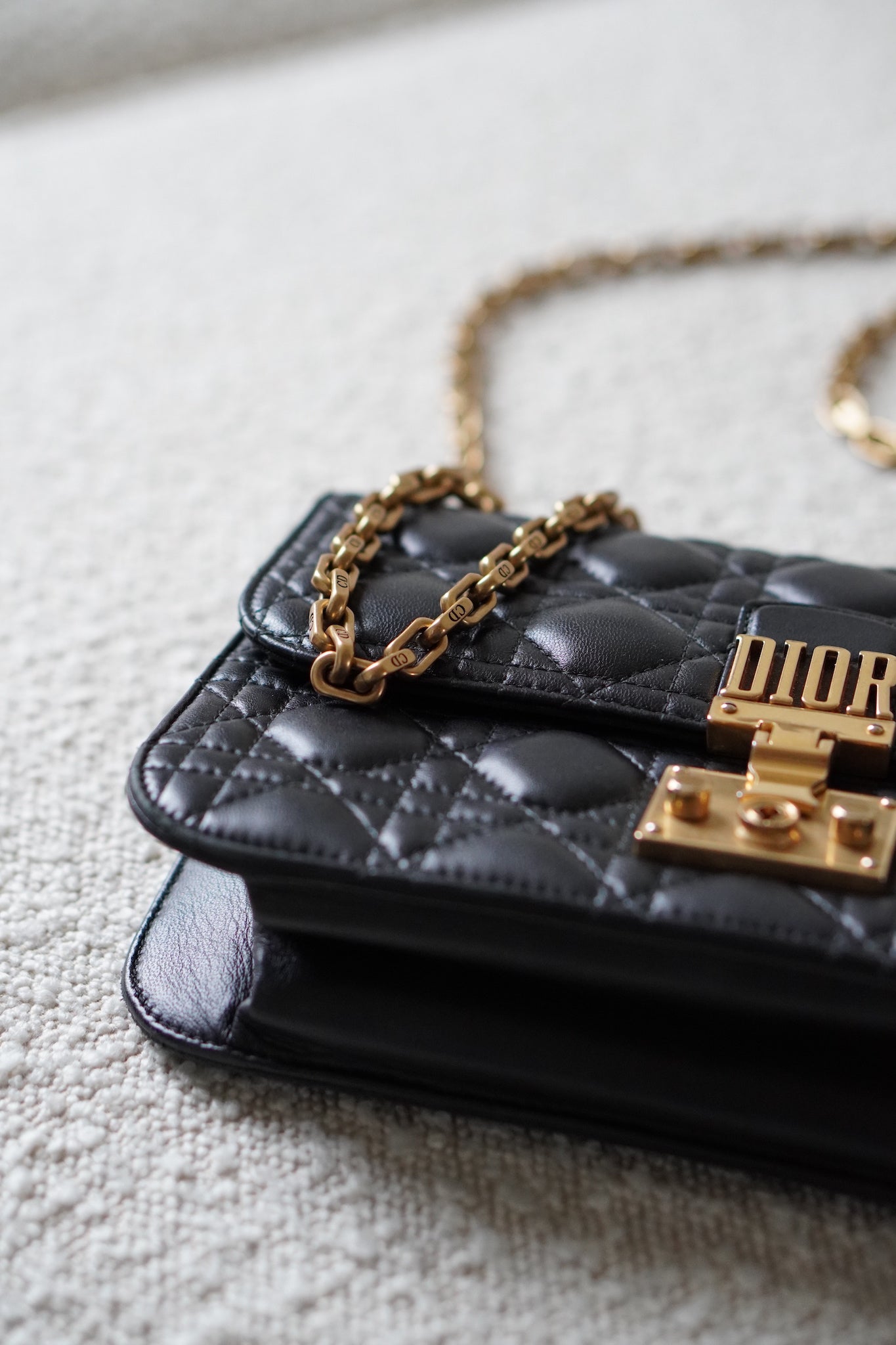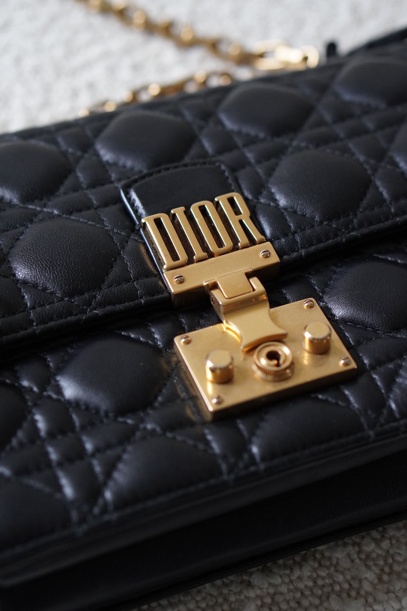The Dior Addict is the embodiment of the classic Parisian fashion. It was introduced in 2017 as a memory of vintage Dior suitcases and is unfortunately discontinued since 2019. This medium square flap bag is crafted in lambskin with the signature Dior Cannage pattern. It is featured with a suede-lined interior and has three compartments (one with zipper and a flat pocket) to carry important daily essentials, like keys, a cardholder and a smartphone, while running errands or perfect for a night out. The flap bag features a chain strap to carry it on the shoulder or as a crossbody. It has a padlock closure, and the fashion house logo in capital letters.