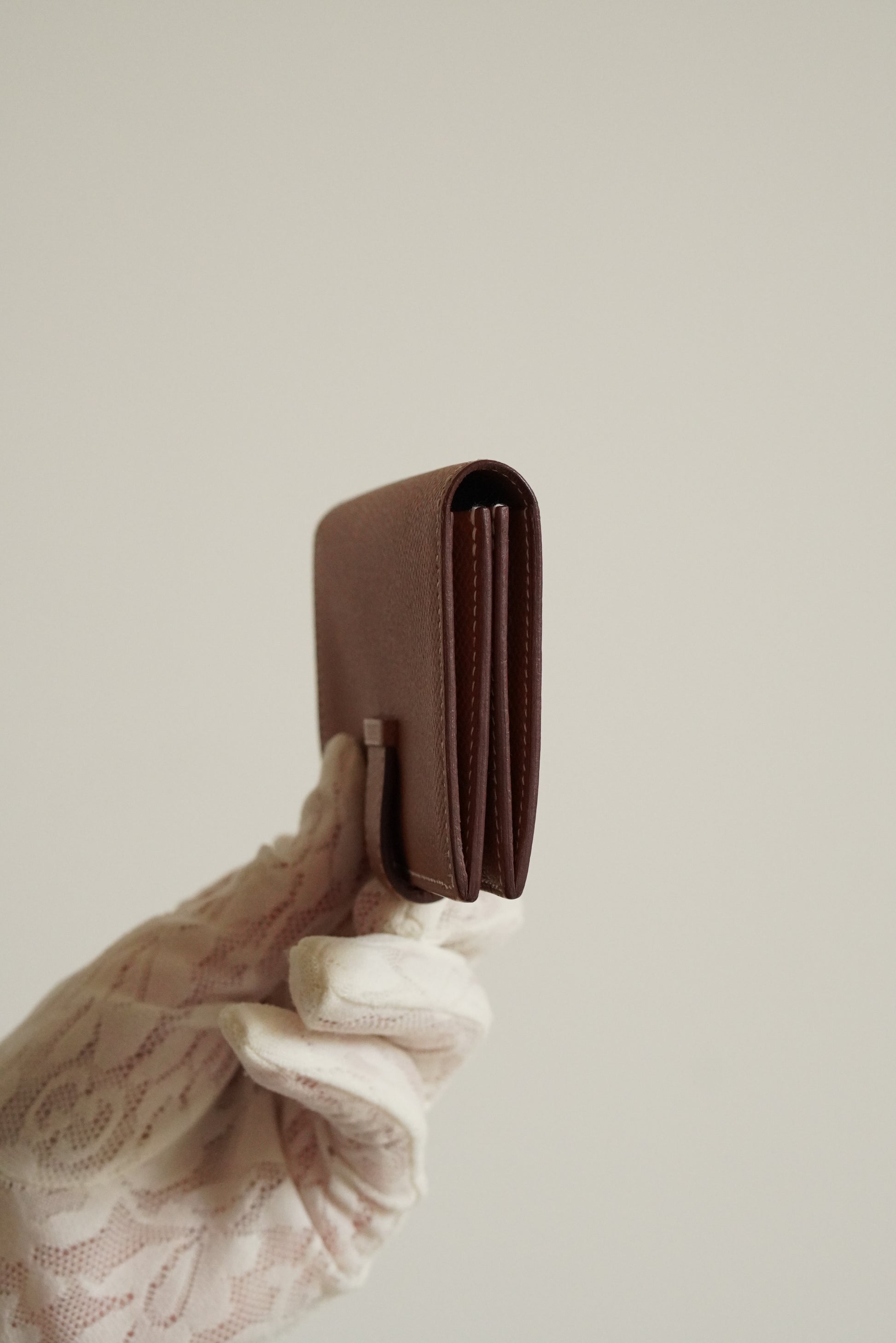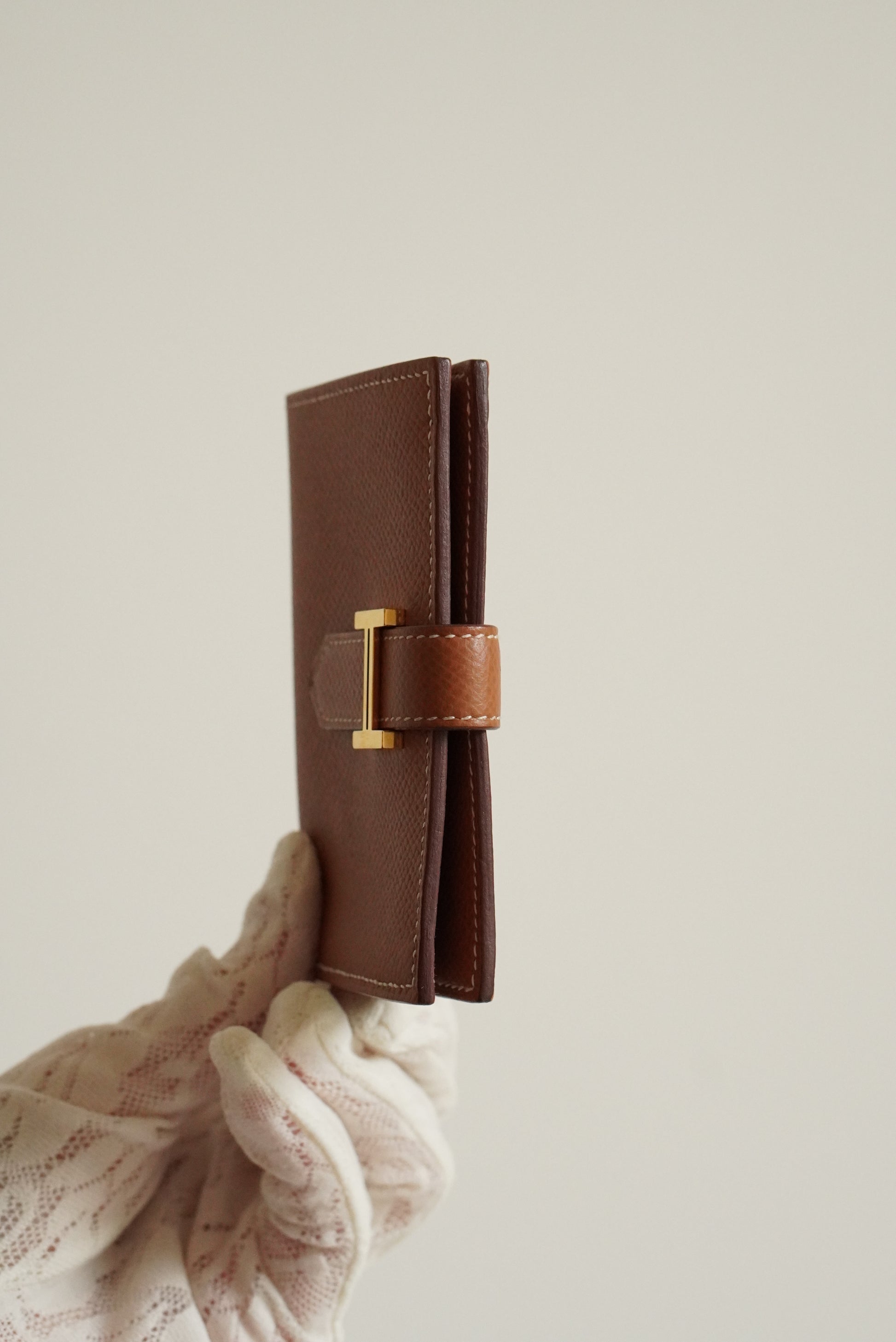 Sophisticated, compact and expertly crafted, the Hermès Bearn Card Holder in Gold Epsom leather with gold hardware is a timeless everyday essential. Made from durable Epsom leather, this elegant piece is secured with the iconic 'H' tab closure in gold hardware. Inside, it features two card slots on each side, offering space for cards or small essentials. Designed for both style and practicality. The Bearn Card Holder slips effortlessly into your bag.