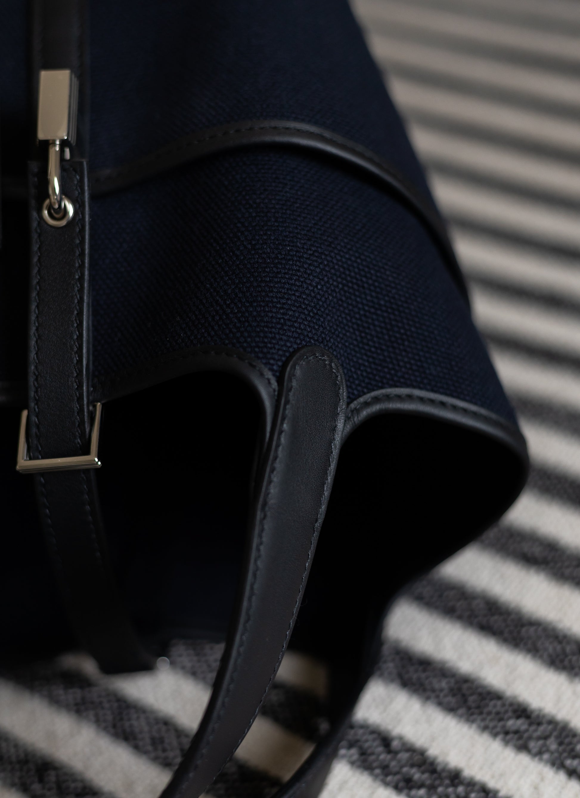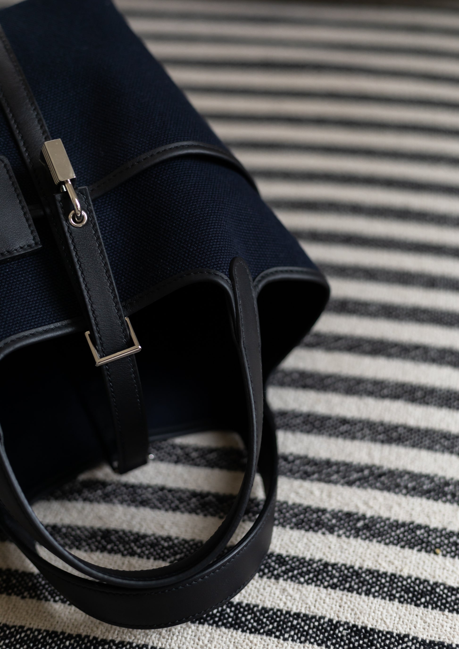 Marine Blue Toile Goeland and Black Swift leather with palladium hardware