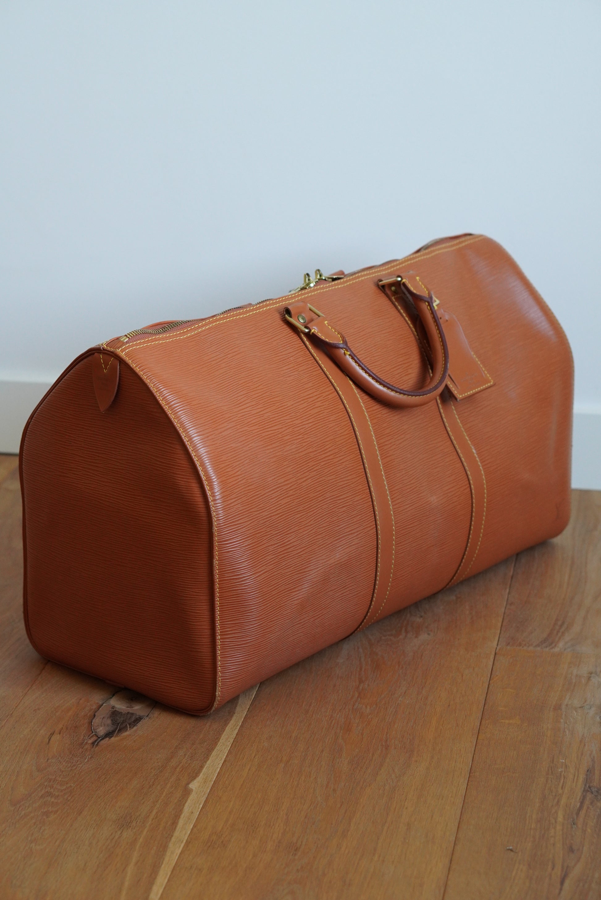 The Louis Vuitton Keepall was introduced in 1930 by Gaston Vuitton as the moderately sized weekender bag of Louis Vuitton to accomodate the shifting travel habits of people at the time. The Keepall is the spirit of modern travel: light, flexible, and always ready for an immediate departure. It's a great carry-on for every trip. The bag is perfect for hand luggage on the plane. This iconic Keepall is crafted from Epi leather. Keep in mind, this Keepall comes without shoulder strap.