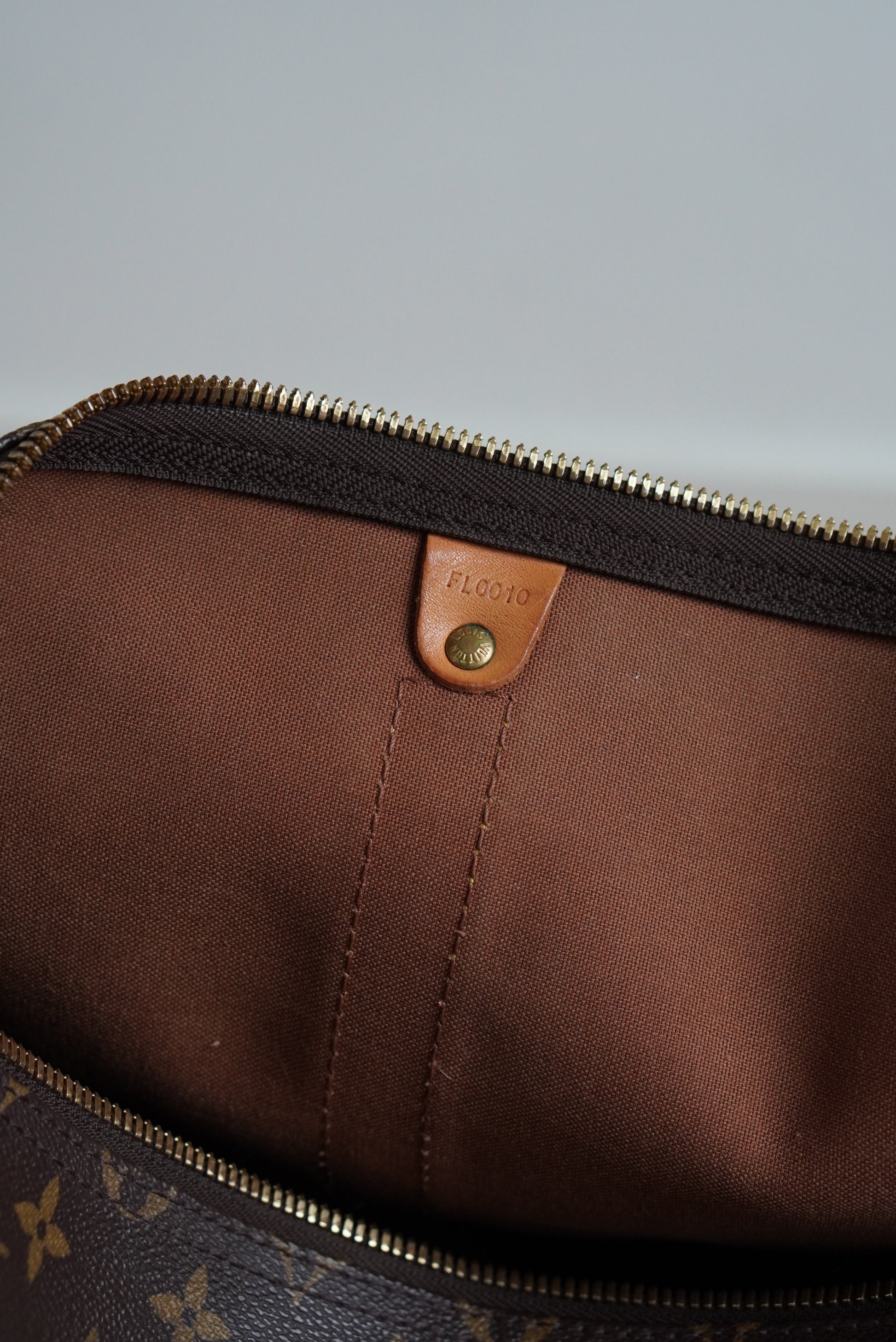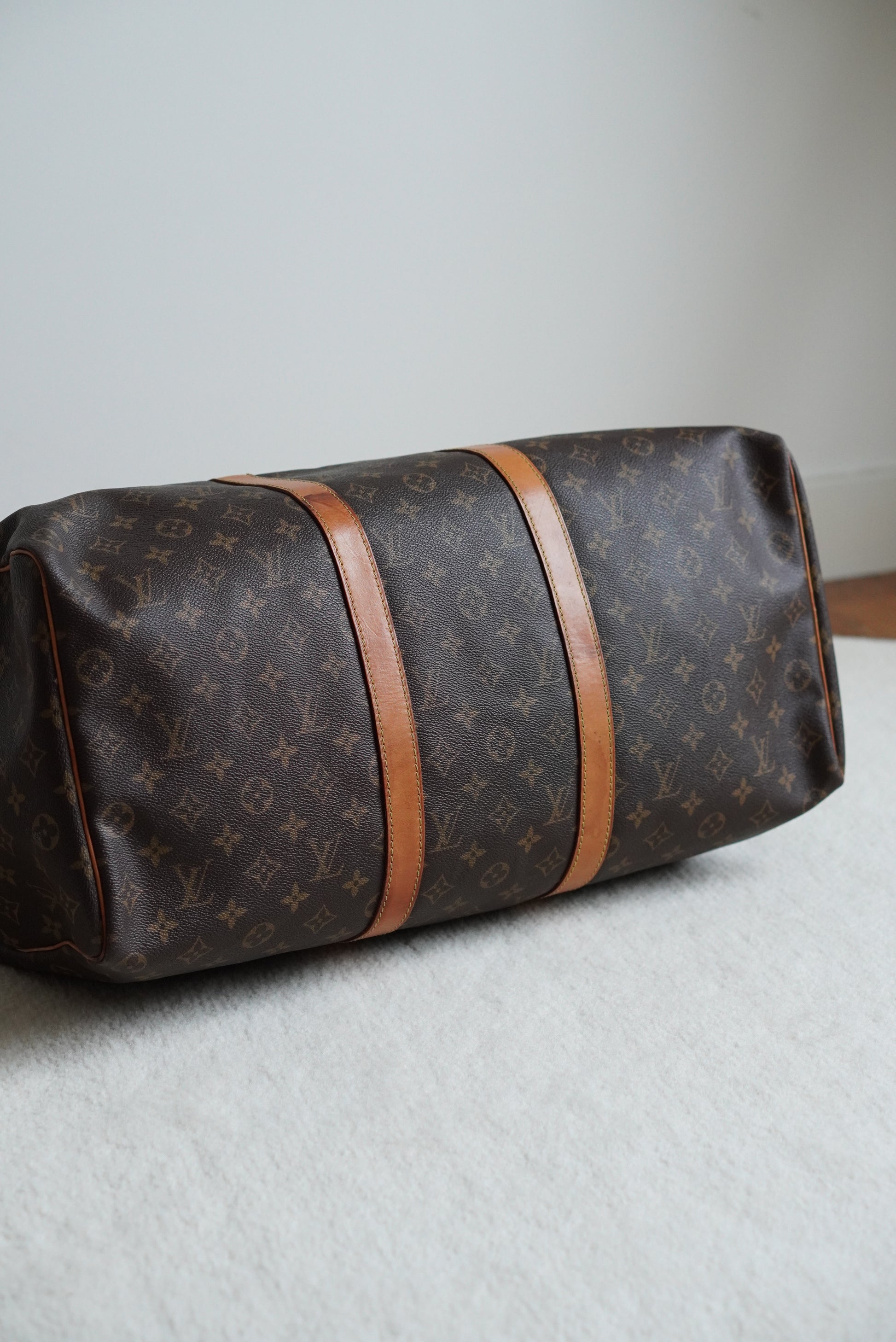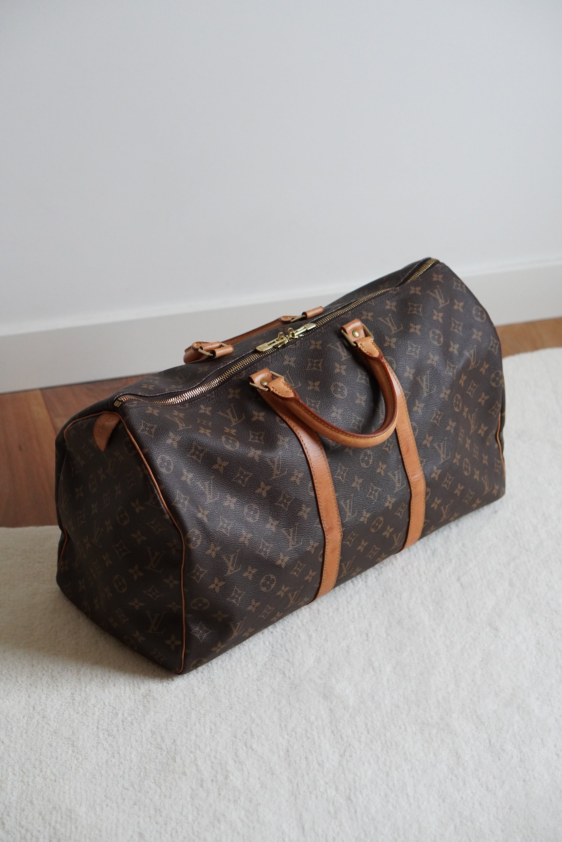 The Louis Vuitton Keepall was introduced in 1930 by Gaston Vuitton as the moderately sized weekender bag of Louis Vuitton to accomodate the shifting travel habits of people at the time. The Keepall is the spirit of modern travel: light, flexible, and always ready for an immediate departure. It's a great carry-on for every trip. The bag is perfect for hand luggage on the plane. This iconic Keepall is crafted from Monogram canvas with a trim in colored cowhide leather. Keep in mind, this Keepall comes without shoulder strap.
