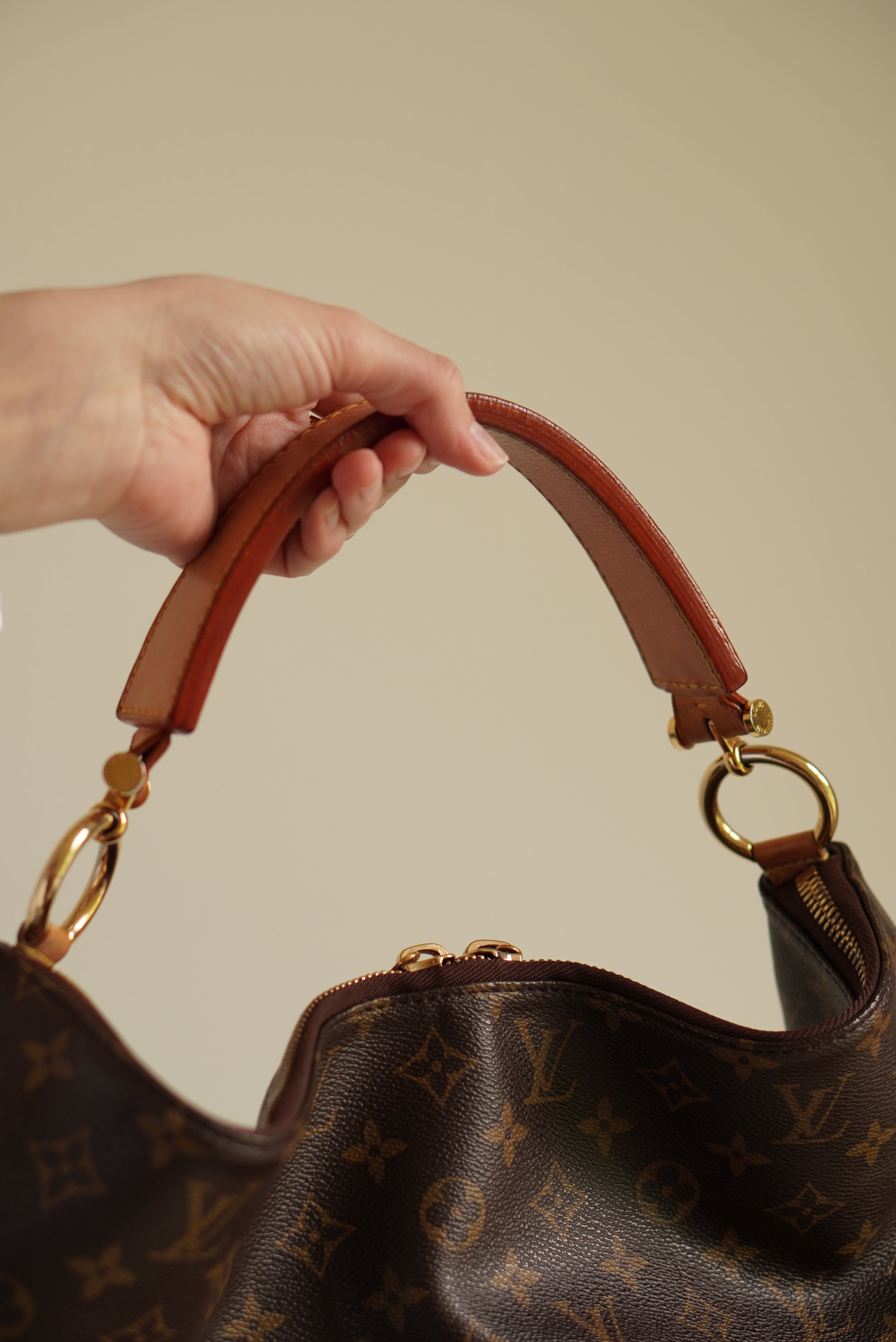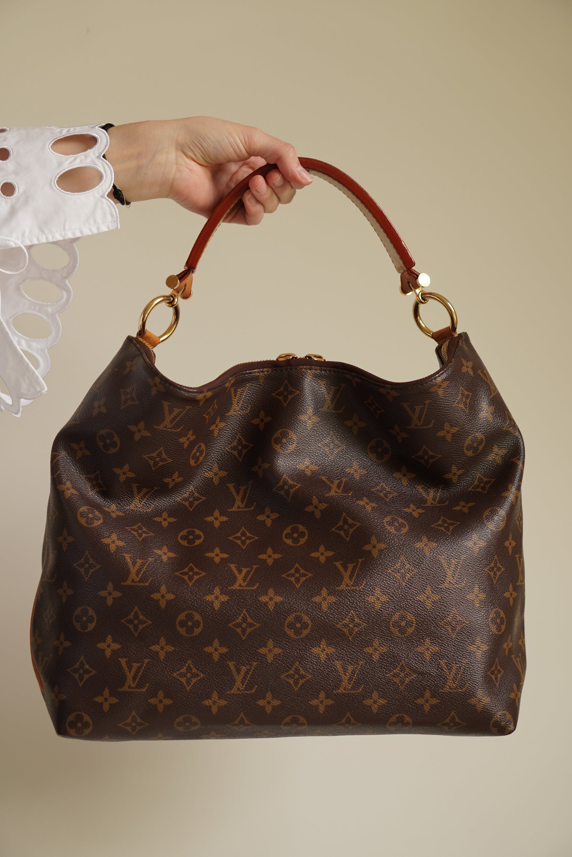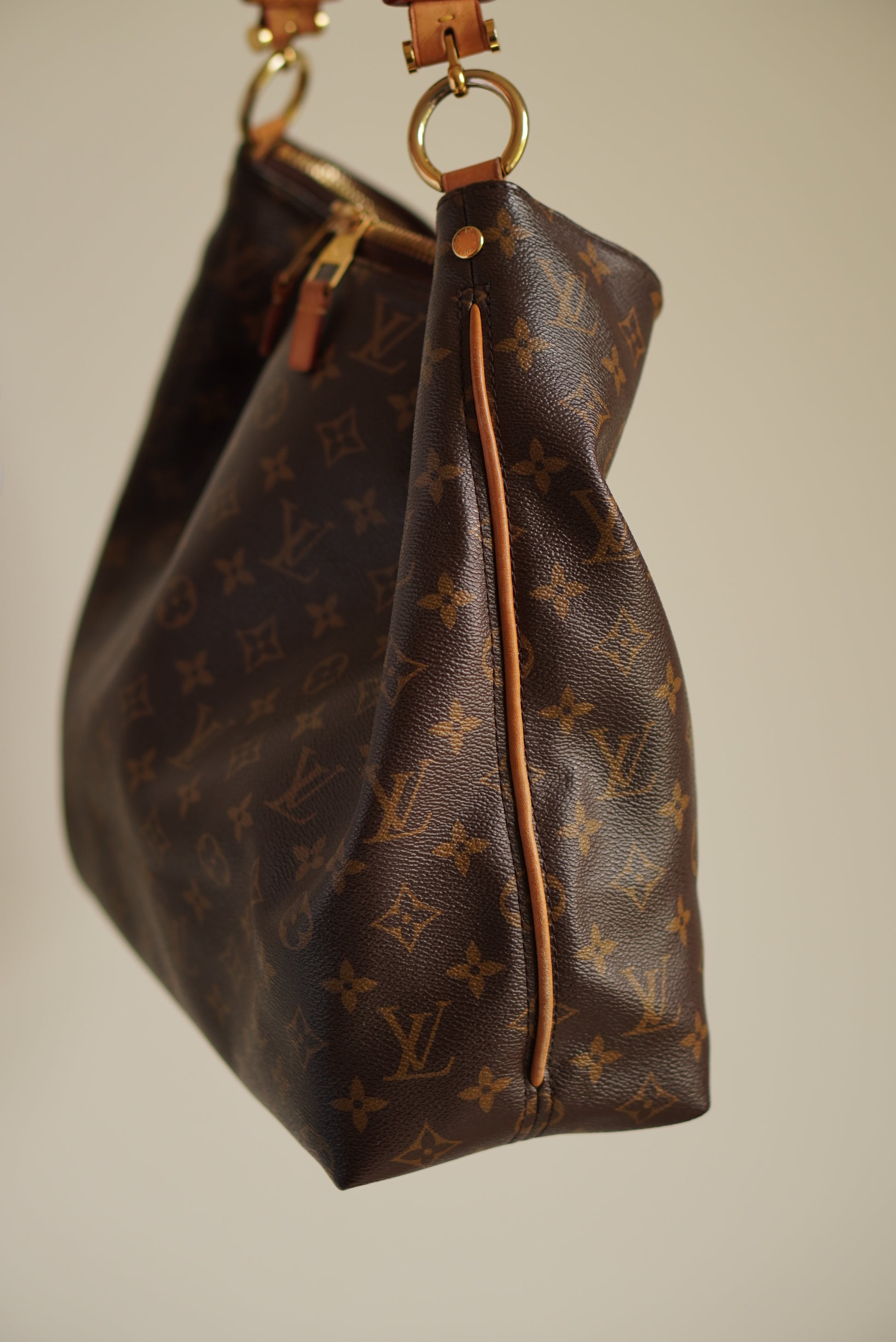 A contemporary blend of vintage details with a hobo style, the Louis Vuitton Sully is the perfect everyday bag. Designed to fit comfortably over the shoulder, the extra wide strap also sits perfectly in the elbow, or in the hand. With just the right amount of interior space to fit all the essentials without being too large. It has a zipped main compartment which features brown textile, two open pockets and one larger open pocket. This beautiful Louis Vuitton bag comes in the signature monogram canvas and gold-toned hardware. This bag will easily become your favorite go-to.