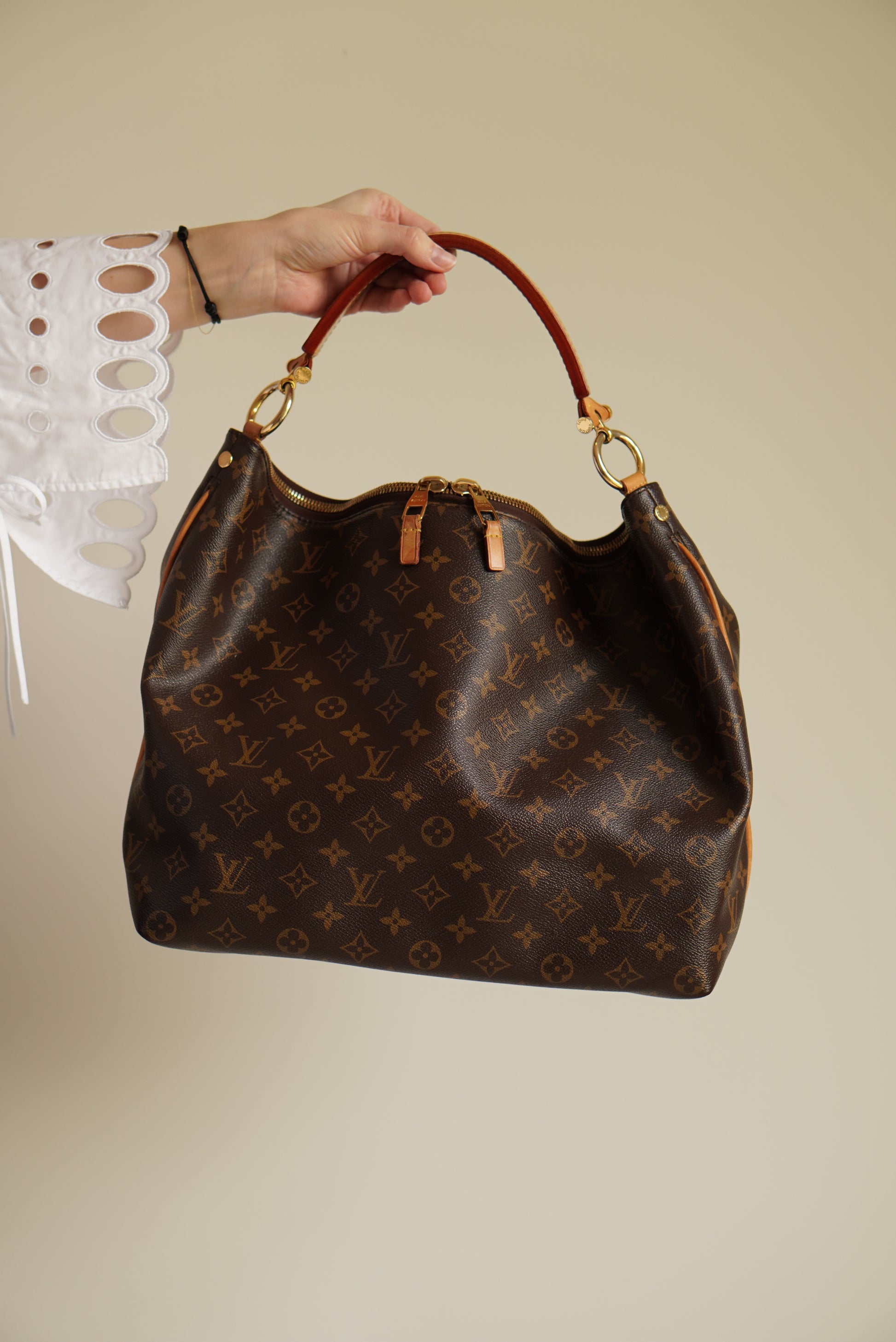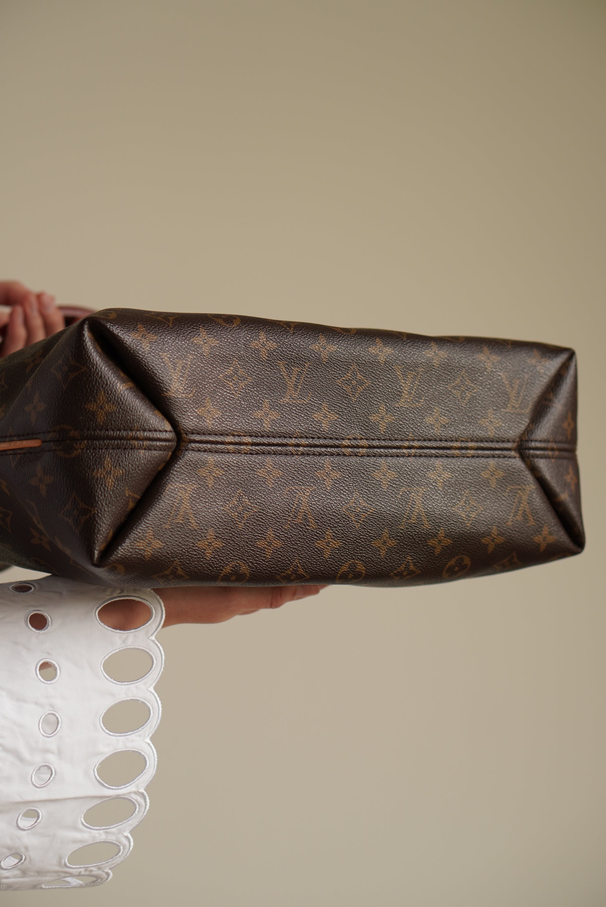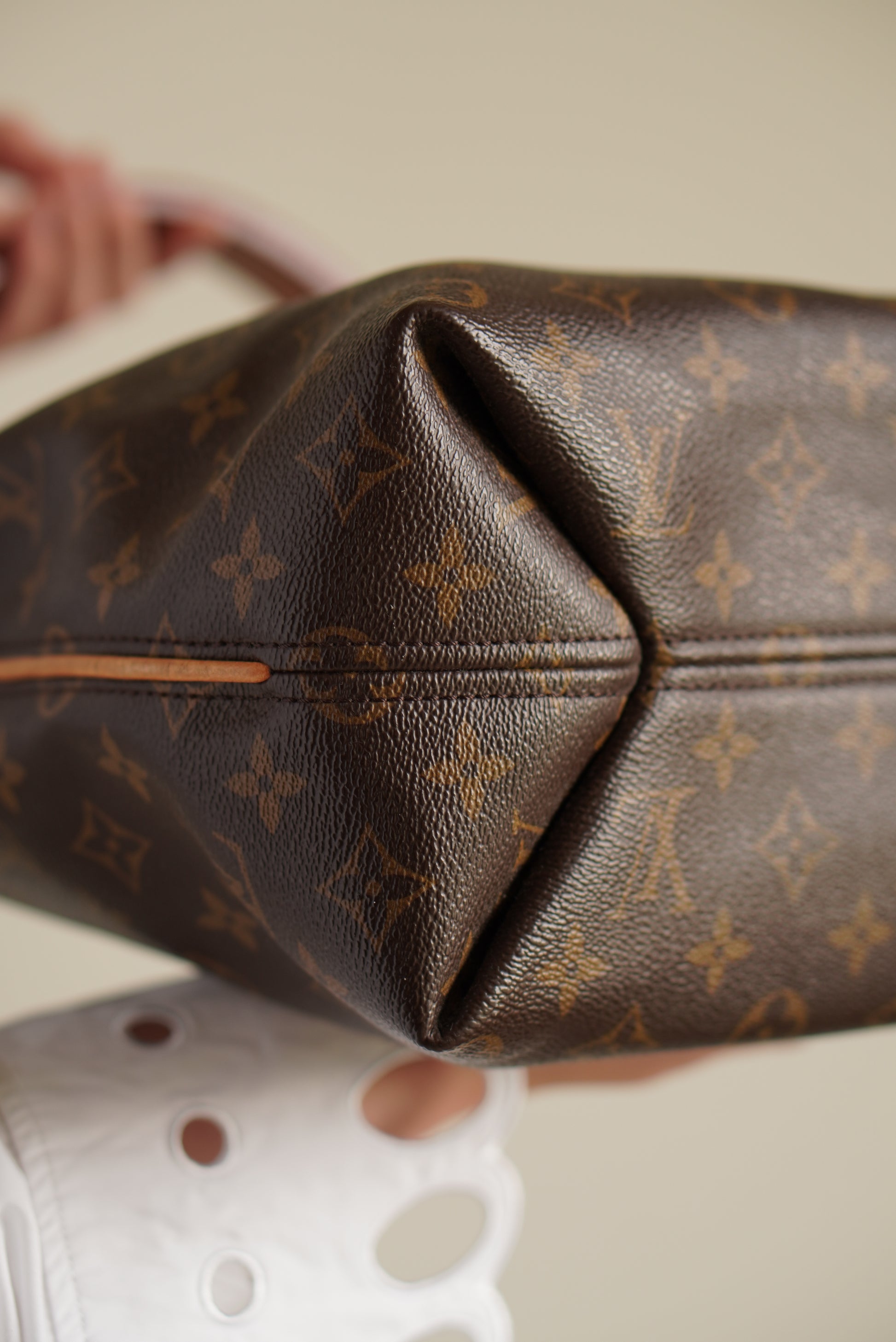 A contemporary blend of vintage details with a hobo style, the Louis Vuitton Sully is the perfect everyday bag. Designed to fit comfortably over the shoulder, the extra wide strap also sits perfectly in the elbow, or in the hand. With just the right amount of interior space to fit all the essentials without being too large. It has a zipped main compartment which features brown textile, two open pockets and one larger open pocket. This beautiful Louis Vuitton bag comes in the signature monogram canvas and gold-toned hardware. This bag will easily become your favorite go-to.